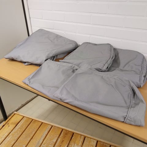 Ikean Ektorp rahin hennonvaaleanpunaiset päälliset, muuten hyväkuntoiset, mutta tyynyosan lyhyemmän sivun vetoketjun vedin puuttuu