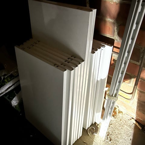 Toisen laatikon kiskokehikko rikkoutu laatikkoa irrottaessa seinäkiinnikkeestä. Niitä saa uusia rautakaupasta.