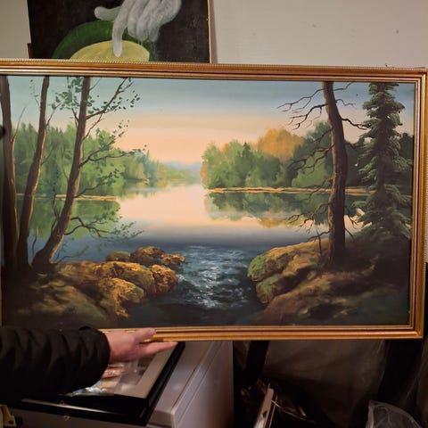 Vuonna 1920 maalattu taulu. Taulun korkeus 46 cm ja leveys 58 cm. Kehyksissä on kulumaa.