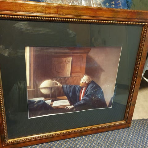Kuva uudenveroinen, kehys hyvä. Kehyksen koko n. 53x44 cm, kuva-aukon koko n. 36,3 x 26,5 cm.