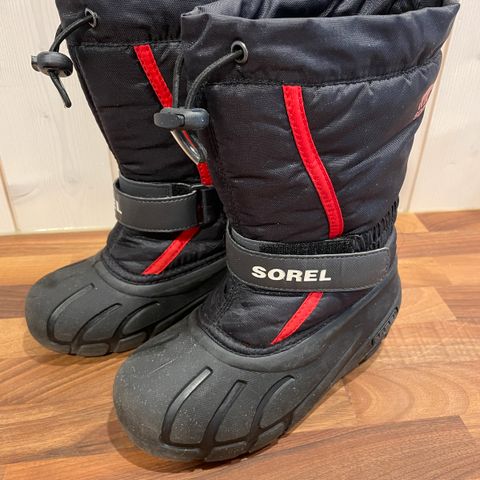 Hyväkuntoiset, mutta käytetyt Sorelin kumisaappaat huopaisella irtovuorella. Saappaissa on kumpparin alaosa ja kangas varsi, jota saa nilkasta kiristettyä. Koko 31. Sisämitta huopikkaassa on 19,5cm.