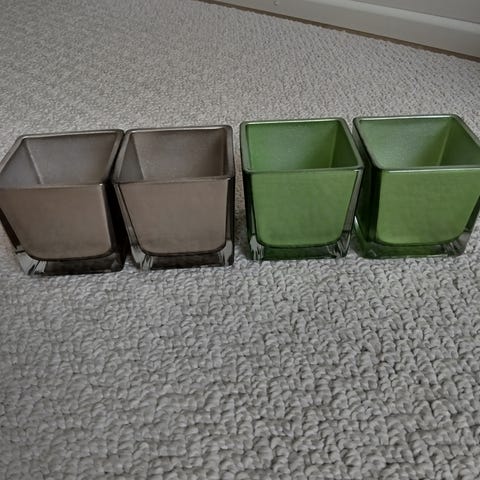 Kolme erilaista kirkasta lasia olevat tuikkualustat, taitaa olla ainakin kaksi kotimaan tuotantoa. Kaikkien hinta yhteensä 10 euroa.