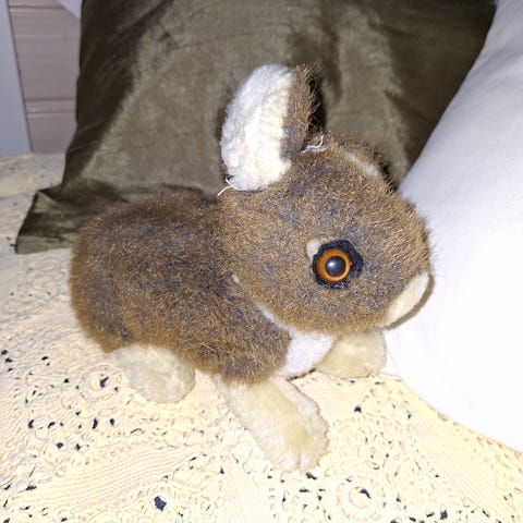 Ruskea pupu-pehmolelu, korkeus 36 cm:ä. Hyvässä kunnossa.