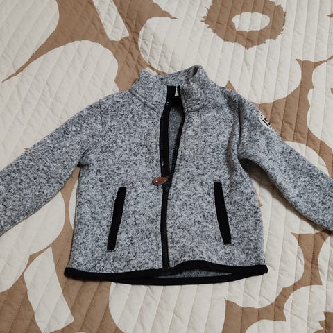 Poroteemainen lasten fleece asu. Takissa vetoketju. Koko 90. Lämpimäksi välikerrokseksi tai oloasuksi.