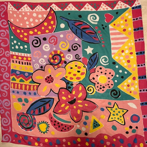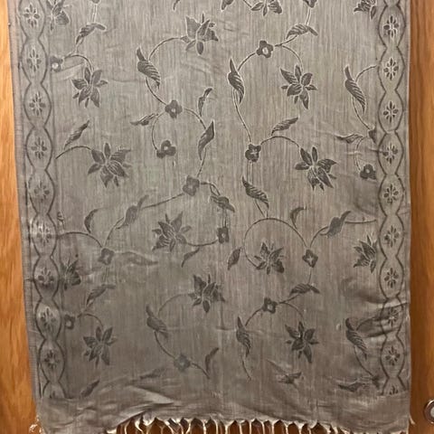 Kiva huivi. Yritin saada kuvaan hapsut. Sisäpuoli on sileä.
