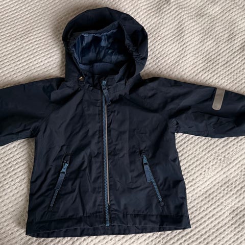 Green Polarn O. Pyret mid-season jacket, size 86, 1-1.5 years. Breathable, waterproof and windproof material. Removable hood.