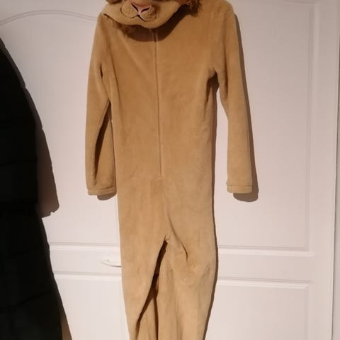 Hyväkuntoinen leijonapuku/paita naamiaisiin tai muuhunkin käyttöön. Unisex, menee jo aika pienelle, ehkä metrin mittaiselle ja vaikka pienikokoiselle aikuisellekin.