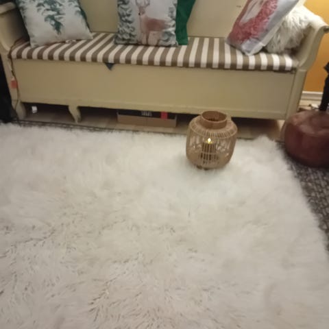 Hakusanat: flokati, villamatto, retro, vintage, päiväpeite, päiväpeitto, turkoosi, boho