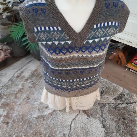 Täyttä villaa, kaunis käsinkudottu villaliivi Perusta metallisoljella. Unisex.