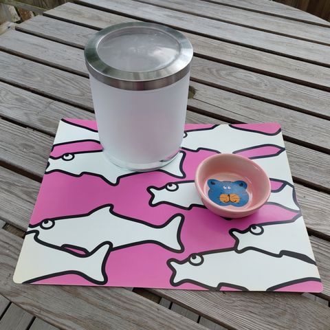 Kissa suuri ruokailukuppien alusta itsellä ollut hiirimattona