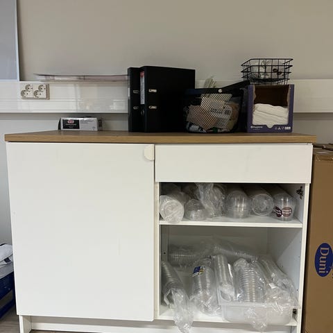 Toimistokalusteet, joissa on 8-osainen puinen kaapisto ja kirjoituspöytä. Kaapiston korkeus on noin 185 cm, leveys noin 160 cm ja syvyys noin 40 cm. Kirjoituspöydässä on kolme vetolaatikkoa. Kalusteet soveltuvat toimistokäyttöön ja tarjoavat säilytystilaa ja työskentelypintaa.Yläkaapistot lukollisia. Suomessa valmistettu eli huippu laadukas. Lisää tietoja soitamalla. 0505555663