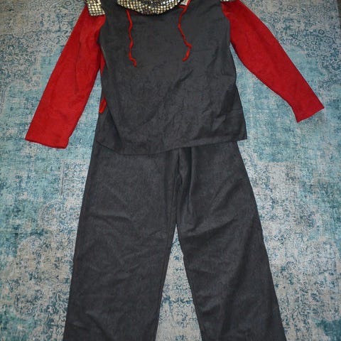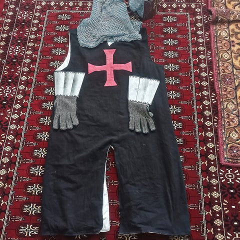 Pari kertaa käytetty ritariasu koossa 128cm. Sisältää paidan, kypärälakin, vyön ja saappaanvarret. Hinta 10€ + mahdolliset postikulut. Jalasjärvi.