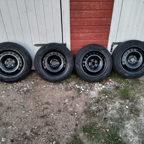 Vajaan talven ajetut Nokian Nordman 7 talvirenkaat Rialin 16” vanteilla. Jako 5x112, pintaa n. 7 milliä ja kaikki nastat tallella. 215/60R16
