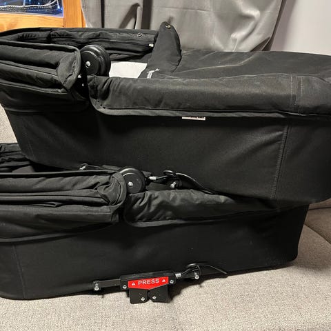 Ainoat viat vaunuissa on työntöaisan pehmusteen kuluminen (näkyy kuvissa),
