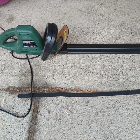 Akkutoiminen, vähäisellä käytöllä ollut pensas leikkuri Biltema .