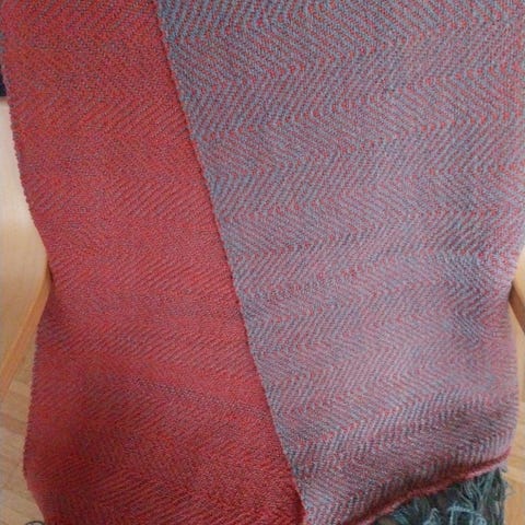 Kangaspuissa kudottu villahuivi. Koko 60 x 220 cm. Hienosta villalangasta siististi kudottu. Virheetön ja puhdas.