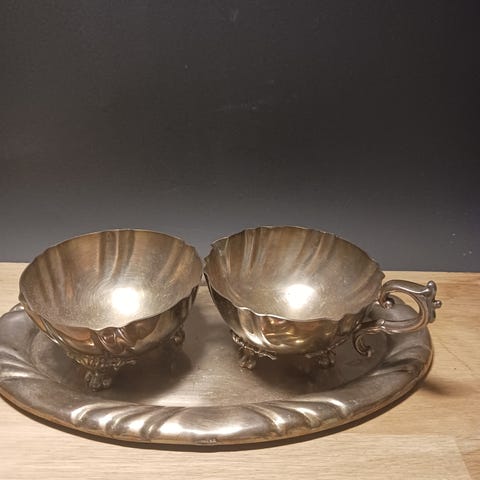 Todella näyttävä Art-Deco tyylinen hopeanvärinen tarjoilusetti (5-osainen).