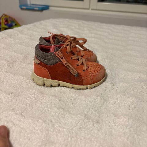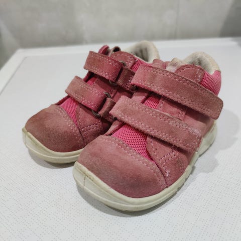 ECCO lasten kengät, koko 20, vaaleanpunainen väri, päällys nahkaa ja kangasta. Nahkakohdat hieman tummentuneet mutta yleisesti siistissä kunnossa.