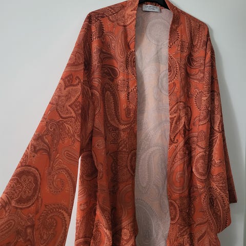 Ihana vaaleanpunainen/hopeinen kimaltava pitkä kimono/takki, koko sopii ainakin S-M.