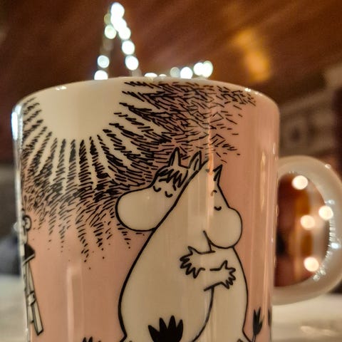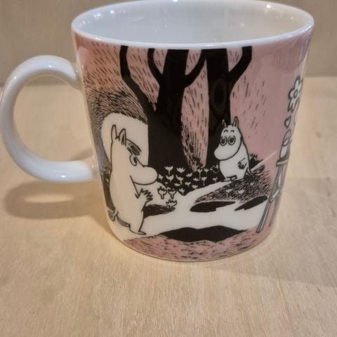 Hyväkuntoinen käytetty muumimuki rakkaus.