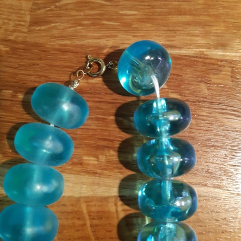 Kauniit turkoosit helmet, suhteellisen painavat, materiaalia en tiedä, voin postittaa ostajan maksaessa postituskulut.