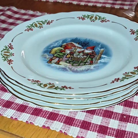 12 kpl syviä "Perinne joulu" lautasia. Entisen apilanlehden, nykyinen Fyrklövern. En tiedä onko uusien kanssa 100% samanlaisia, mutta niiden ovh. 23,90e/kpl. Nämä lähtis tästä 15e/kpl tai jos ostat 6kpl eli puolet koko setistä niin 80e/6kpl. Kaikki 12kpl kerralla 150e.