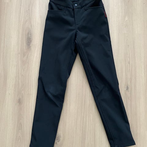 Kapea malli, vyötäröllä kiristysmahdollisuus. Hoikalle hyvät. Polvissa jo kulumaa, sekä muutama pieni reikä/reiänalku (näkyy kuvissa).