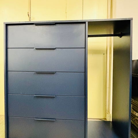 Hyväkuntoinen teline eteiseen, paikat kengille ja takeille.