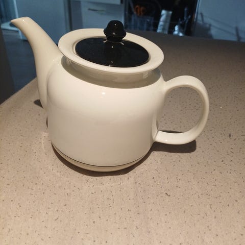 Arabia teekannu ruskeaa keramiikkaa. Kannussa on pyöreä muoto, kädensija ja kansi. Sopii teen tarjoiluun ja keittiön astiastoksi.