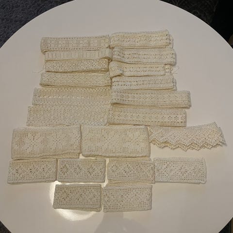 Pitsejä on yli 500m yhteensä. Tässä pitsejä tarvitsijalle moneen käyttöön. Koko erä kerralla. Postitus +10,90e tai nouto sovittaessa. Mobilebay/käteinen
