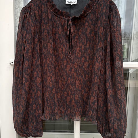 Ganni Black Mesh Long Sleeve Roll Neck Blouse paita