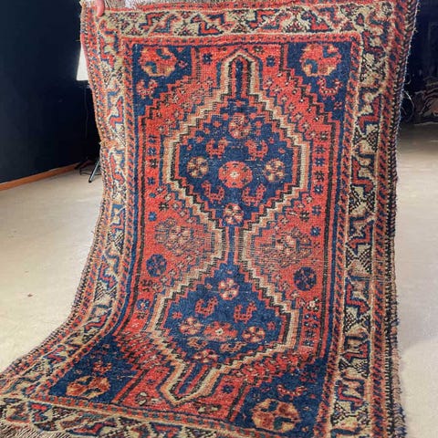 käsinsolmittu itämainen aitomatto villamatto vintage persialainen pieni aito vill heriz punainen tumma matto käsinkudottu käsin käsintehty käsityö antiikkimatto vintagematto helsinki helsingissä