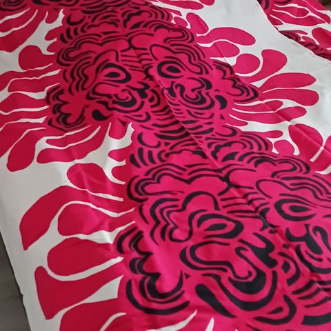 2 kappaletta Marimekko Stilla kankaasta muotoonommeltua verhoa. Korkeus 244cm ja leveys 68cm. Myydään parina.