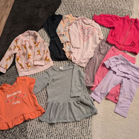 Myydään vaatepaketti, kokoa 74. Käytetty kunto, kaikki vaatteet on ehjiä.
