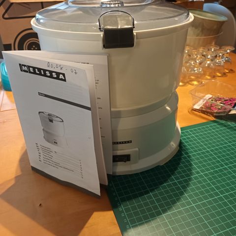 Emerio- merkkinen perunankuorimiskone, jolla voi kuoria pestyjä perunoita enintään 1 kg kerrallaan.Kuorimisaika käyttöohjeen mukaan n 2 min. Käyttöohje tulostettu.