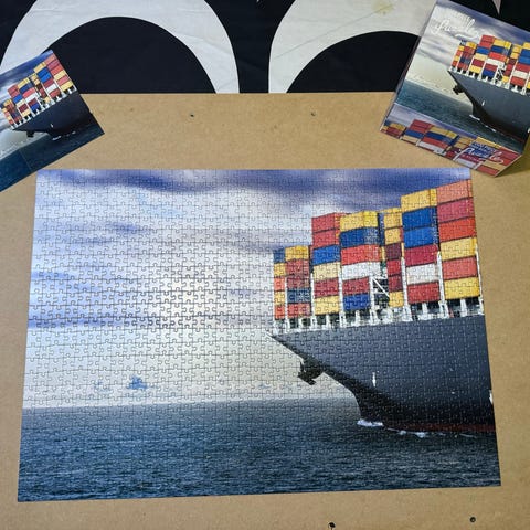 Cherry Pazzi ,2000 palan palapeli, jossa on laiva-aiheinen kuva. Kuvassa näkyy historiallisia purjelaivaja. Kerran koottu. Haku,käteismaksu tai mobilepay.