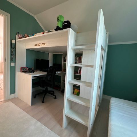 Kuultovalkoinen kerrossänky koko 70x155cm. Koko korkeus 130cm.