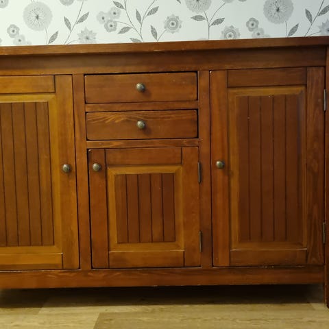 Massiivinen tammisenkki, hieno, toinen oven lukitus rikki.