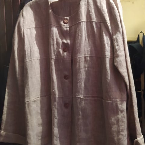 Tumman ruskea pellavatakki olkatoppauksilla (halutessaan irroitettavat). Hyvässä kunnossa!
