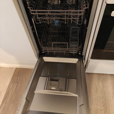 Myynnissä Logik Slimline astianpesukone. Ostettu toukokuussa Gigantista, joten takuuta vielä 18 kuukautta jäljellä.