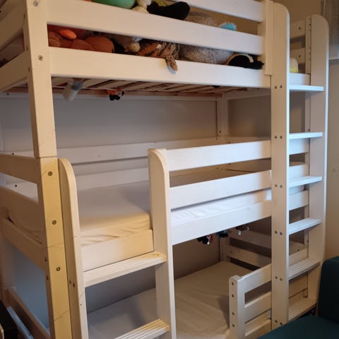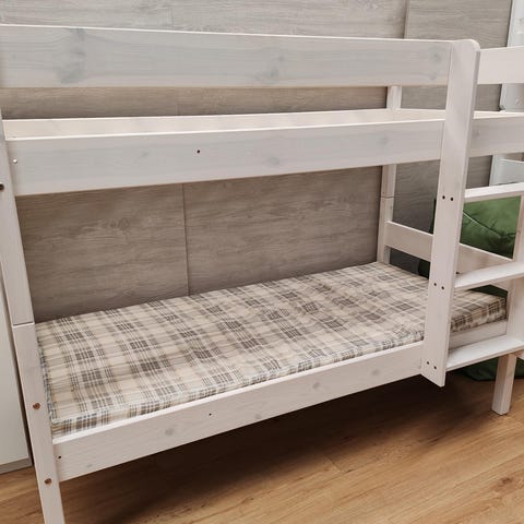 Kuultovalkoinen kerrossänky patja koossa 80x200cm. Sängyn koko korkeus 168cm.