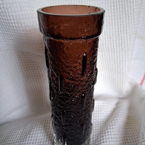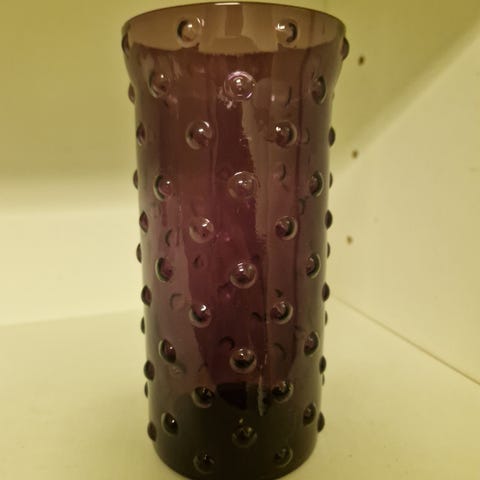 Kirkas Tamara Aladinin suunnittelema maljakko. Malli 1461 joita valmistettu Riihimäen lasille vuosina 1967-1968.