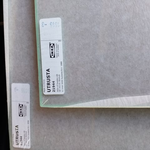 Avaamaton pakkaus Ikean Utrusta lasihyllylevyjä. Koko 60x37cm. Sopii esim. keittiön kaappeihin.