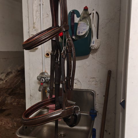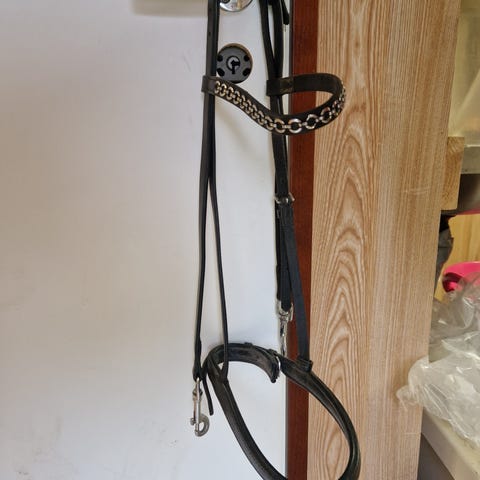 Mustat full suitset sinisellä piristyksellä ja ohjat