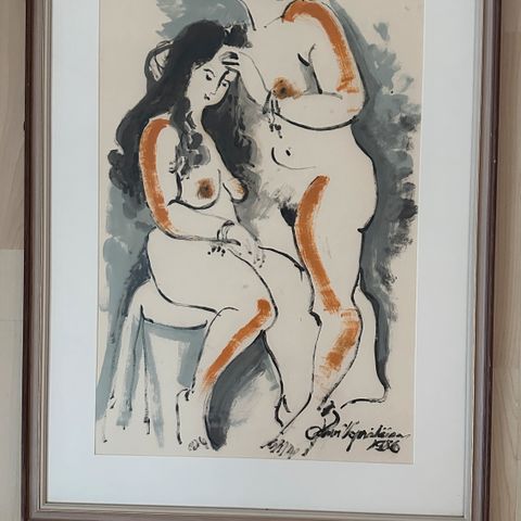 Kuvan päällä on lasi. Kehyksissä on pieniä vaurioita.