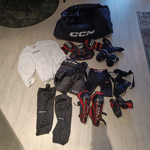 Myydään erittäin laadukas ja vähän käytetty jääkiekko varustepaketti n. 120-130cm lapselle.