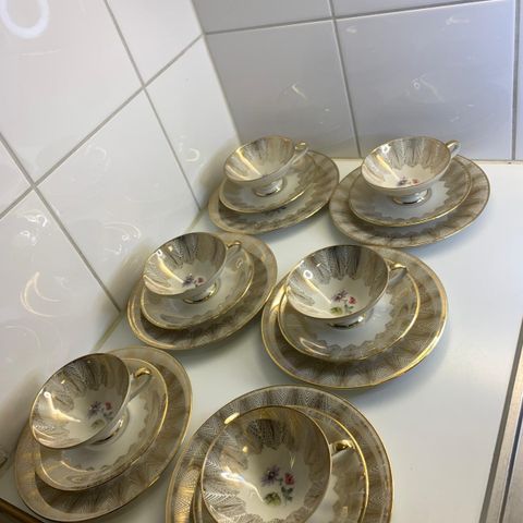 – Kultakoristeiset kukkakuviot, uurrettu reuna