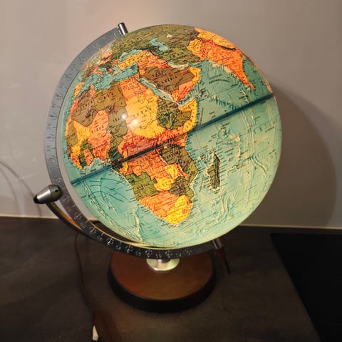 Kuu karttapallo valolla ja pyörivällä telineellä. (Suuri mysteeri ratkeaa, voit selvittää mitä kuun takapuolella on!)