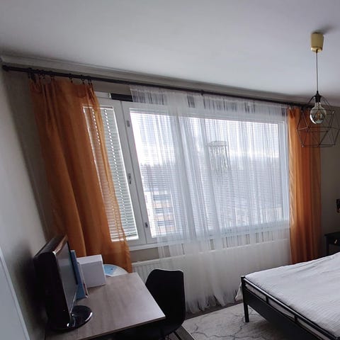 Tummanvihreät sifonki(läpinäkyvät) verhot.