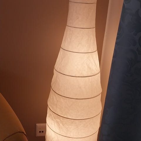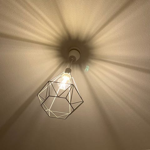 Mukaan saa kaiken kuvassa näkyvät eli kiinnikkeet, ikean lampun ja töpselin. Halkaisija 25cm.
